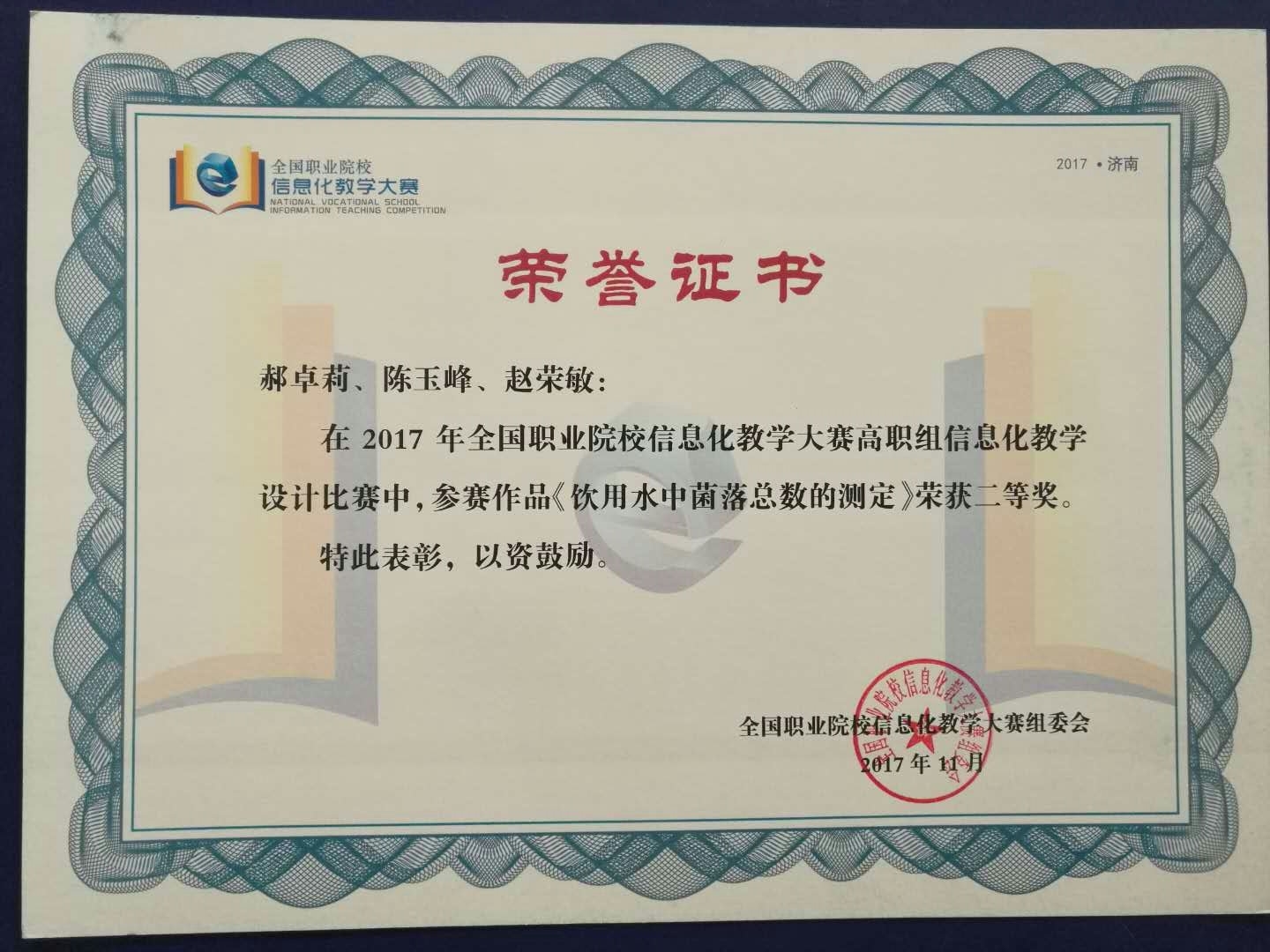 我系在全国信息化教学大赛中荣获佳绩为推动信息技术与教育教学深度融合,提高职业院校教师教育技术应用能力和信息化教学水平,教育部于11月25日至27日在山东济南举办2017年全国职业院校信息化教学大赛决赛。此次大赛,河北省共计获得一等奖3项(中职2项、高职1项),获得二等奖10项(中职2项、高职8项),获得三等奖18项(中职11项、高职7项)。我系派由陈玉峰主任、郝卓丽老师、赵荣敏老师参加比赛,荣获大赛二等奖,为学院和河北省争得了荣誉。